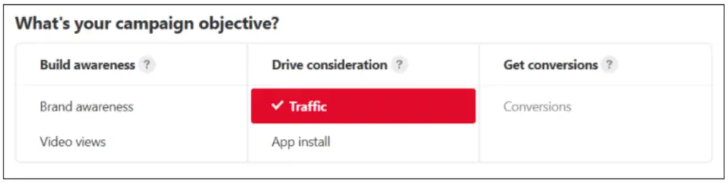 Et altafgørende trin i din Pinterest-annoncering er at sætte en målsætning, der passer til de konverteringer, du vil lave. Opret en kampagne til hvert af de valgte målsætninger, så du er sikker på, at du rammer rigtigt.